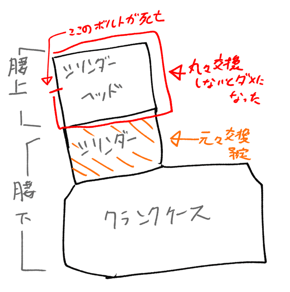バイクメンテ界隈においてはシリンダーヘッドを「腰上」。それから下を「腰下」と呼ぶぞ。