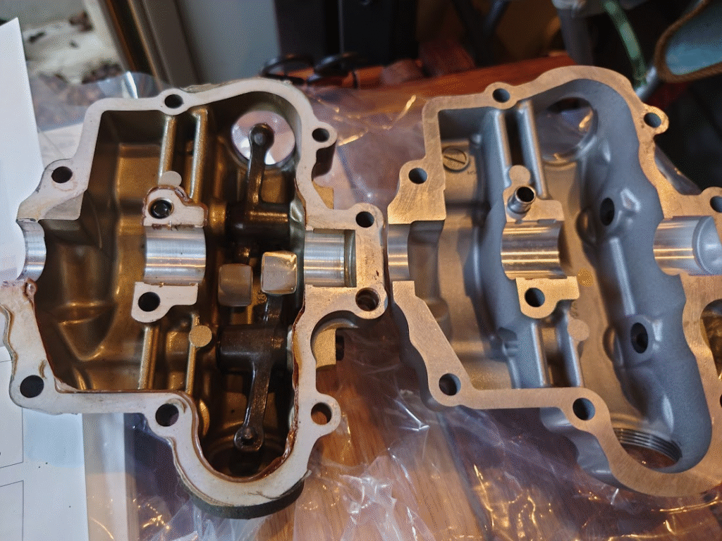 後ろにあるのはカバー(蓋)だが、ジェベル200は蓋のほうにロッカーアームがつくので実質2部位みたいなイメージだ。