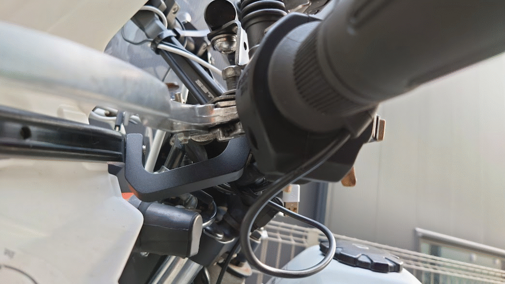 正直ハンドルとの留め具パーツを前のものに戻すなどすればよかったんだけど、そのためにグリップヒーターを一つ破壊するリスクは取りたくないし、今あるカードで戦っていこう。