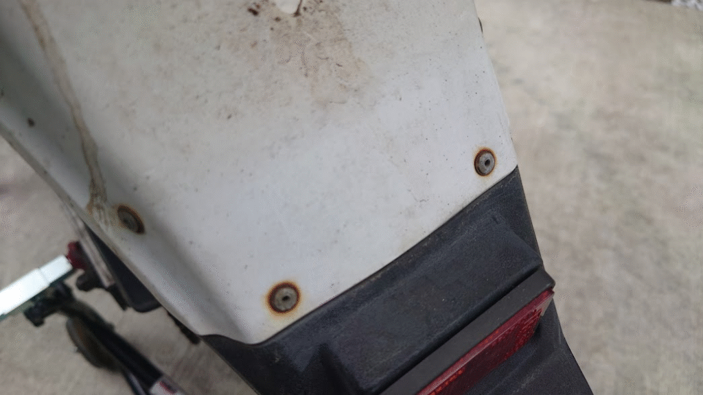 マッドフラップの搭載にあたり反射板が邪魔になる。これをとってしまおう。