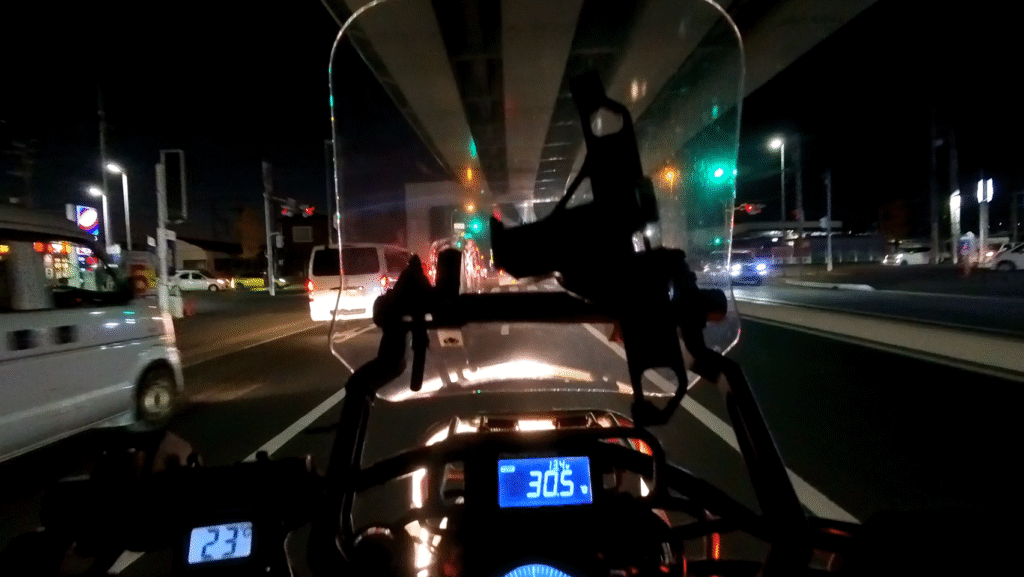 すっかり夜だが、昨日のジェネレーター交換後の試走も兼ねて30㎞ほど走行してみた。