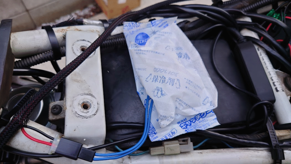 このサーモスタットは9度以下でしか接続されないので保冷材で冷やしてみるぞ。