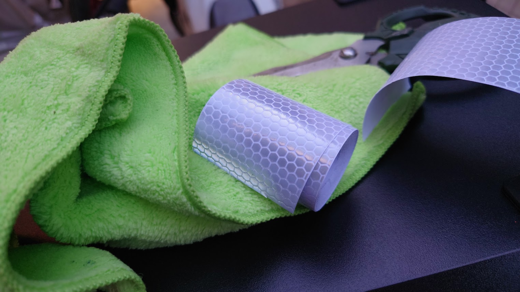 後方視認性を少しでも上げておきたいので反射テープもはっておこう。