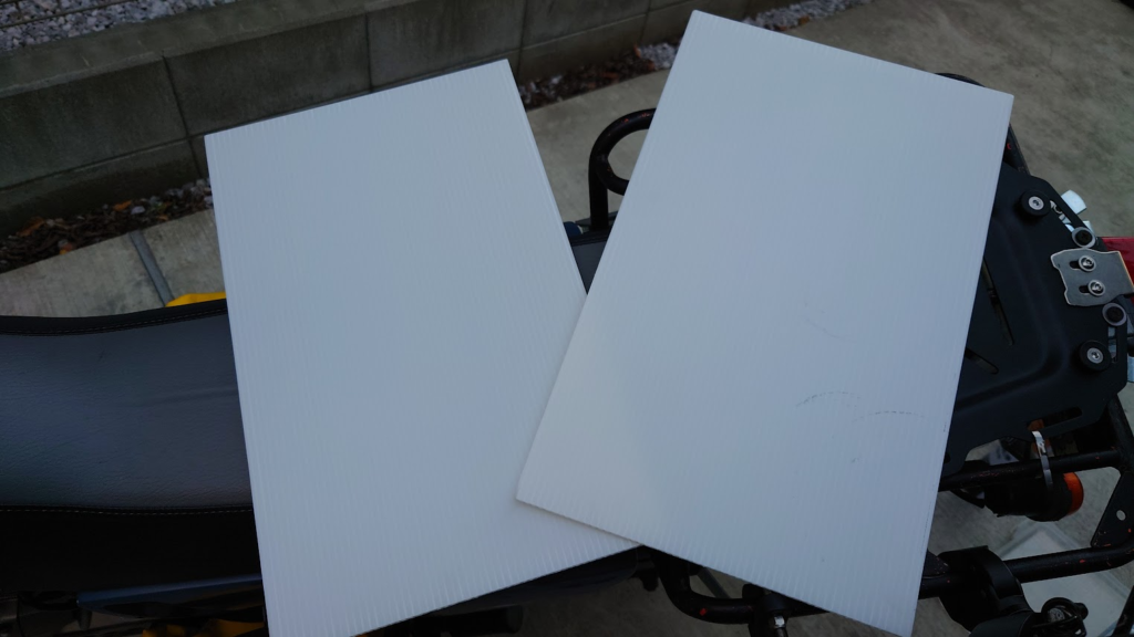 風を完全にふさいでしまうとエンジンのオーバーヒートにつながりそうなので、一応左右にずらせる形にした。