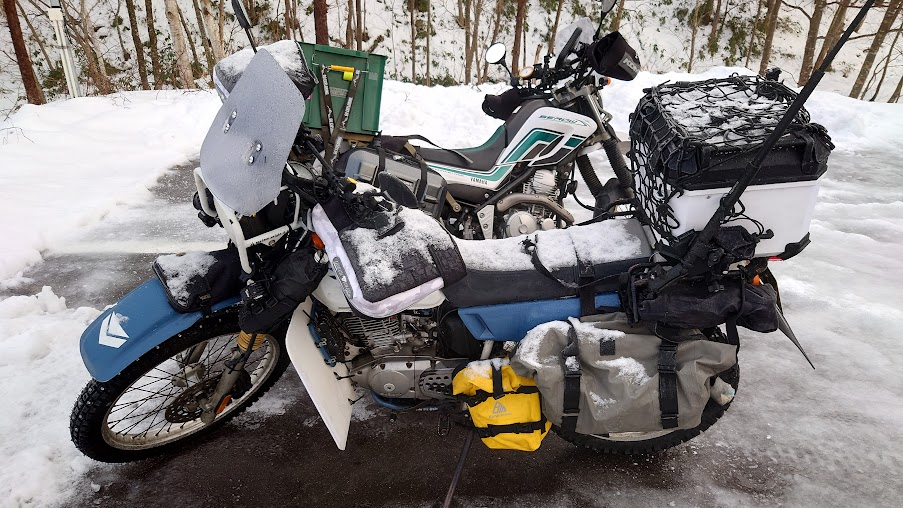 おかしいな、こんな雪道をどうしてバイクが走っているんだ?