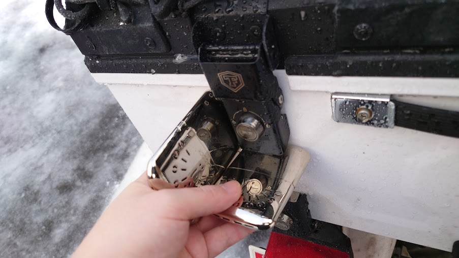 凍ってしまいトップケースが開かない。
