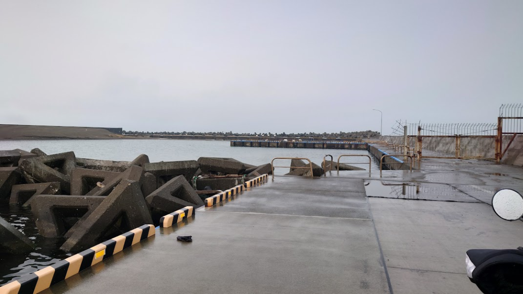 現在目の前を通る道路はかつての線路であり、ホームはこの防波堤ドームに連絡してあったようだ。