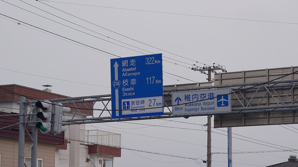 ところで稚内の青看板はロシア語が併記されているんだな。