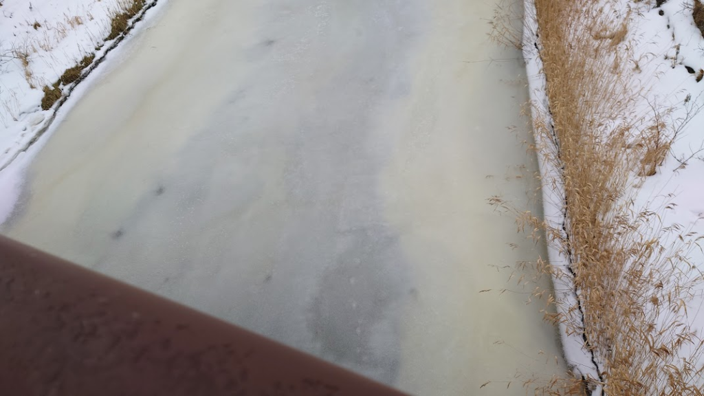 川が凍っている。