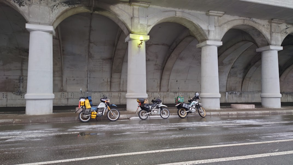こんなすごいホテルの前に限界積載バイクがこの時期は並ぶのだからギャップがすごい。